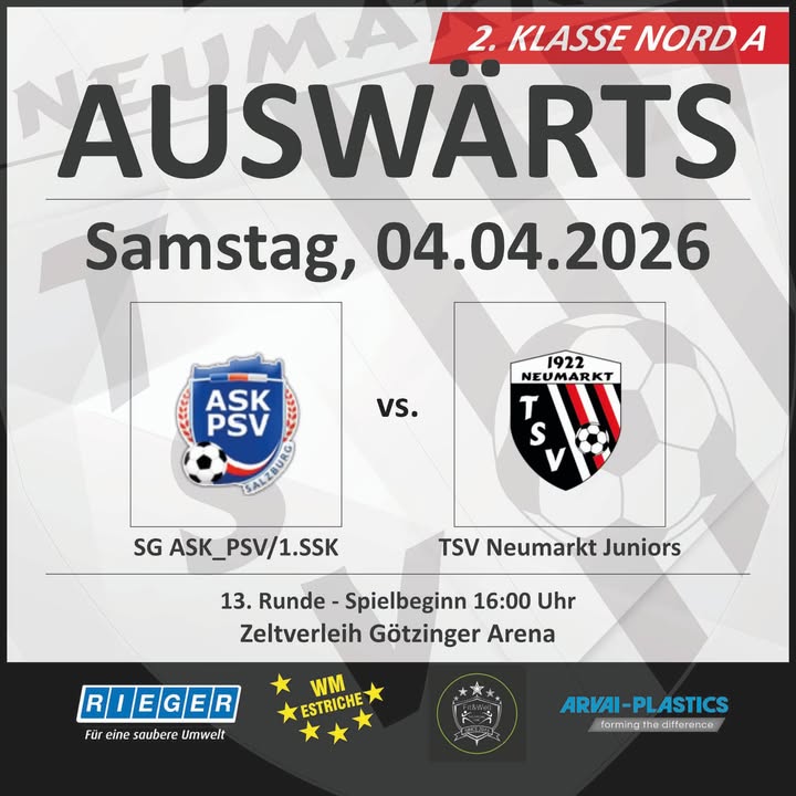 👉 Die Juniors bestreiten zum Abschluss der Fastenzeit ihr Spiel bei der Spielgemeinschaft ASK_PSV Salzburg / 1. SSK 1919.